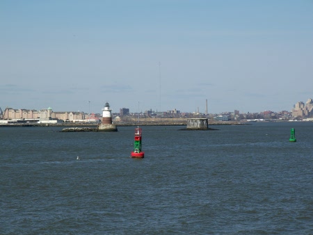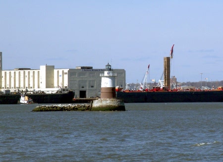 The octagonal structure to the north of the lighthouse is a sewer outfall constructed in 1915 that discharges sewer overflow from the lower Passaic Valley system.