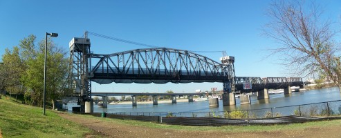 The Junction Railroad Bridge was built by the Union Pacific Railroad sometime in the early 20th century. The Junction Bridge carried trains across the Arkansas River until being decommissioned in 1984. When I visited in 2007, it was at the beginning of a conversion into a pedestrian walkway across the Arkansas River, connecting the renewed downtown with North Little Rock and the arena on the north side.